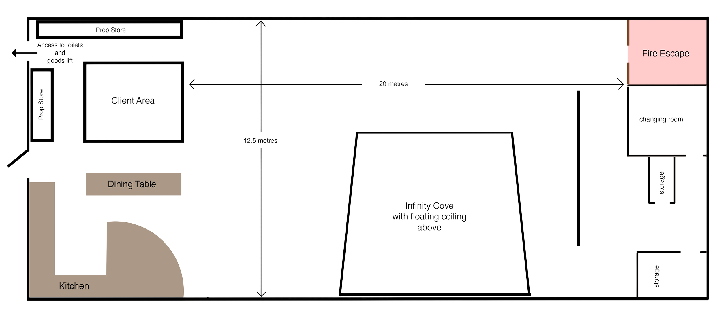 Welcome to one of Bristol’s largest hire studio. A total space of 350 sq metres, including fully equipped kitchen, infinity cove and client area. A unique space to create and host your clients.